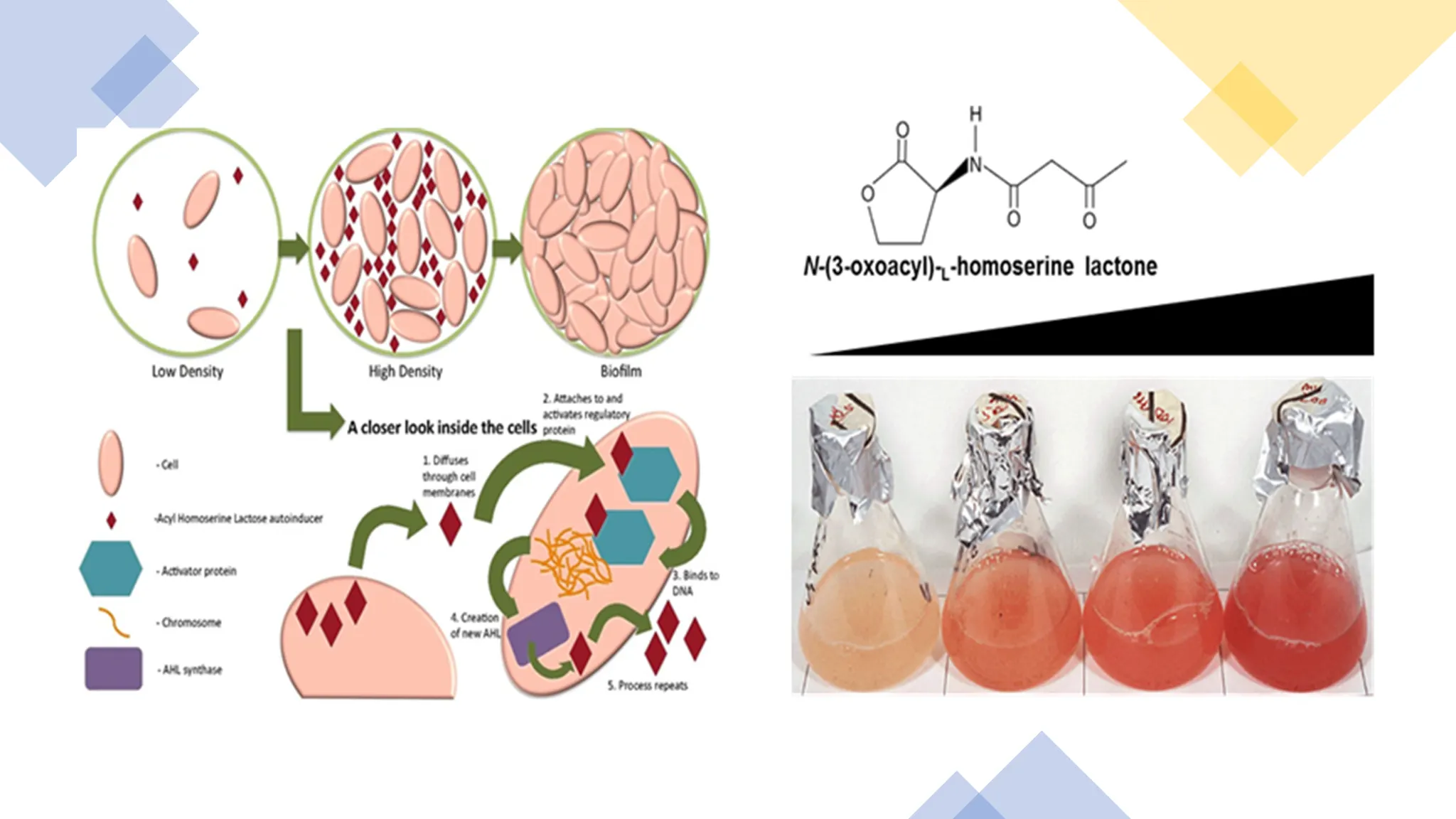 정족수 신호인식 (Quorum sensing)은 신호물질 기반의 미생물간 연락 체계로 알려져 있습니다. 통상 정족수 인식 신호물질 (quorum sensing signal molecule)과 미생물의 농도가 일정 수준을 넘어갈 경우 미생물의 농업 유용 활성을 증진시켜줄 수 있으며, 사용하는 신호 물질의 경우 환경에 무해한 것으로 알려져 있어 지속가능한 농업 기술로 알려져 있습니다.